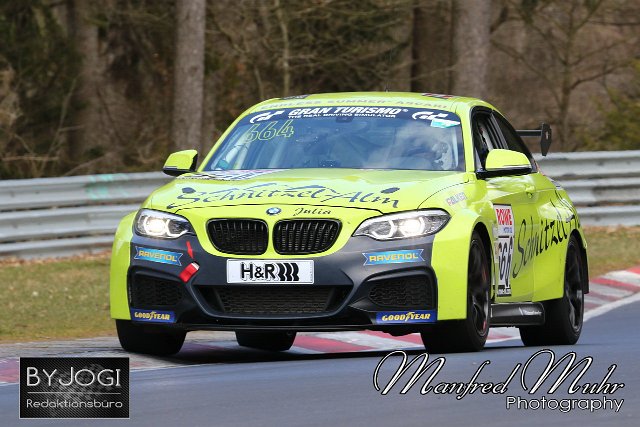 #666 Karl Friedrich Kolb (München) / Michael Bräutigam (Aichwald) / Christopher Brück (Köln), BMW M240i Racing Cup, Team: Schnitzelalm Racing GmbH Nürburgring Langstrecken Serie NLS, Lauf 1, 66. ADAC Westfalenfahrt, Freies Training | ||