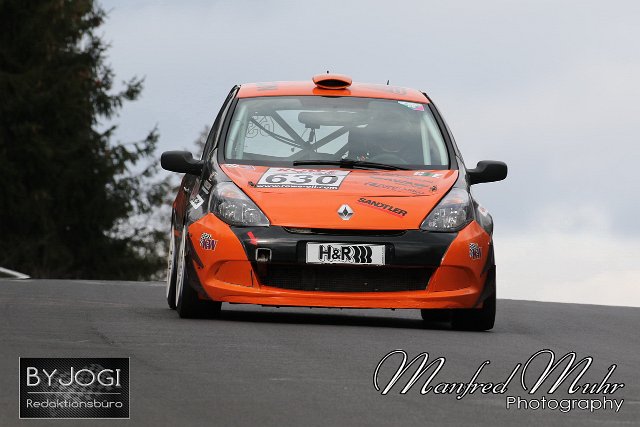 #630 Michael Uelwer (Wuppertal) / Dr. Volker Kühn (Bonn) / Andreas Winterwerber (Frankfurt), Renault Clio Cup, Team: aufkleben.de - Motorsport (DEU) Nürburgring Langstrecken Serie NLS, Lauf 1, 66. ADAC Westfalenfahrt, Freies Training | ||
