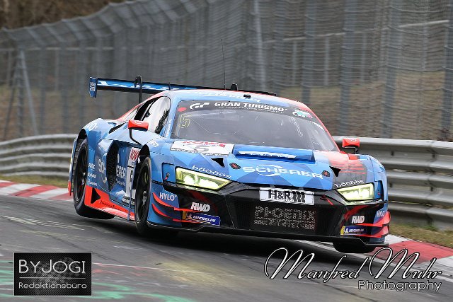 #5 Frank Stippler (Bad Münstereifel) / Kim Luis Schramm (Wümbach) / Vincent Kolb (Frankfurt), Audi R8 LMS, Team: Phoenix Racing (DEU) Nürburgring Langstrecken Serie NLS, Lauf 1, 66. ADAC Westfalenfahrt, Freies Training | ||