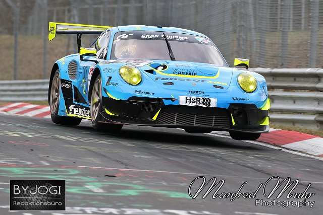 #25 Phillip Neuffer (Stuttgart) / Nico Menzel (Kelberg), Porsche 911 GT3 R, Team: Huber Motorsport (DEU) Nürburgring Langstrecken Serie NLS, Lauf 1, 66. ADAC Westfalenfahrt, Freies Training | ||