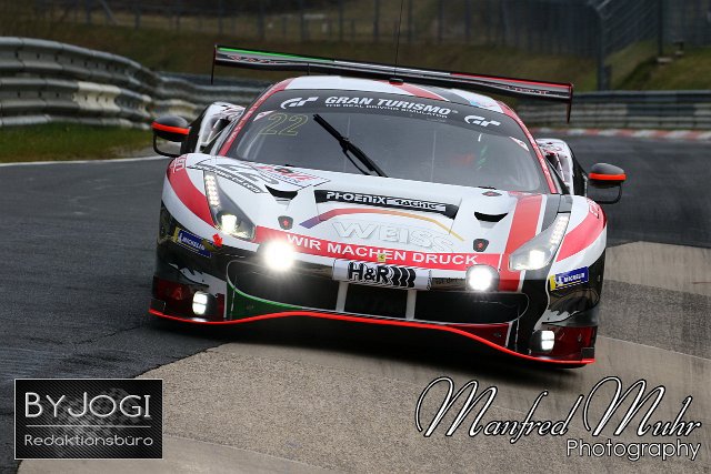 #22 Georg Weiss (Monschau) / Daniel Keilwitz (Villingen-Schwenningen) / Jochen Krumbach (Eschweiler), Ferrari 488 GT3, Team: WTM Powered by Phoenix (DEU), Nürburgring Langstrecken Serie NLS, Lauf 2, 45. DMV NIMEX 4-Stunden Rennen, 16.04.2021, Freies Training Freitag | ||