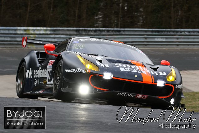 #26 Björn Grossmann (CHE) / Simon Trummer (CHE) / Jonathan Hirschi (CHE), Luca Ludwig (CHE), Ferrari F488 GT3, Team: Octane 126 AG (CHE) Nürburgring Langstrecken Serie NLS, Lauf 2, 45. DMV NIMEX 4-Stunden Rennen, 16.04.2021, Freies Training Freitag | ||