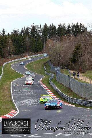 #5 Frank Stippler (Bad Münstereifel) / Vincent Kolb (Frankfurt), Audi R8 LMS, Team: Phoenix Racing (DEU) vor dem späteren Sieger #911 Kevin Estre (FRA), Lars Kern (Wiernsheim) / Michael Christensen (GBR), Porsche 911 GT3 R, Team: Manthey Racing (DEU), Nürburgring Langstrecken Serie NLS, Lauf 2, 45. DMV NIMEX 4-Stunden Rennen, 17.04.2021, Rennen | ||