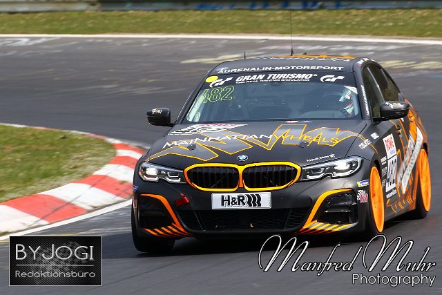 #482 Fabienne Wohlwend (LIE) / Uwe Ebertz (Sinn Fleisheim) / Jakob Erlbacher (Böblingen), BMW 330i, Team: Adrenalin Motorsport (DEU) Nürburgring Langstrecken Serie NLS, Lauf 2, 45. DMV NIMEX 4-Stunden Rennen, 17.04.2021, Rennen | ||