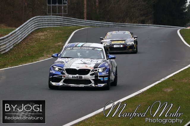 #870 Francesco Merlini (ITA) / Yannick Fübrich (Brackenheim) / David Griessner (AUT), BMW M2 CS Racing, Team: Adrenalin Motorsport (DEU) vor #128 Celia Martin (Adenau) / Carrie Schreiner (Völklingen), Audi R8 LMS GT4, Team: GITI TIRE MOTORSPORT BY WS RACING DEU) NLS Nürburgring Langstrecken Serie, Lauf 3, 62. Eibach ADAC ACAS Cup - Freies Training | ||
