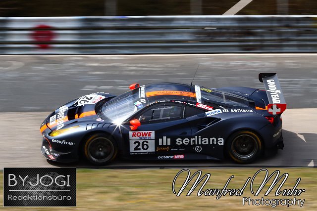 #26 Björn Grossmann (CHE) / Jonathan Hirschi (CHE) / Luca Ludwig (CHE), Ferrari F488 GT3, Team: Octane 126 AG (CHE) NLS Nürburgring Langstrecken Serie, Lauf 3, 62. Eibach ADAC ACAS Cup - Freies Training | ||