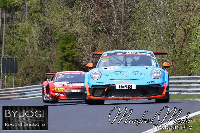 #80 Achim Thyssen (München) / Hans Wehrmann (Grünwald) / Klaus Rader (München), Porsche 911 GT3 Cup, Team: Huber Motorsport (DEU) vor #40 Milan Dontje (NDL) / Klaus Koch (Erbach) / Peter Schmidt (Walluf), Audi R8 LMS GT3, Team: Car Collection Motorsport (DEU), NLS Nürburgring Langstrecken Serie, Lauf 3, 62. Eibach ADAC ACAS Cup, Rennen | ||