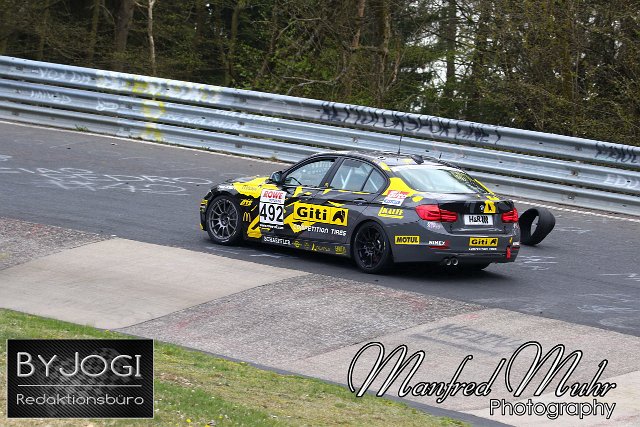 #492 Nils Steinberg (Siegen) / Andrei Sidorenko (Rosengarten) / Ulrich Schmidt (Kamen), BMW 330i, Team: GITI TIRE MOTORSPORT BY WS RACING (DEU) mit Reifemschaden, NLS Nürburgring Langstrecken Serie, Lauf 3, 62. Eibach ADAC ACAS Cup, Rennen | ||
