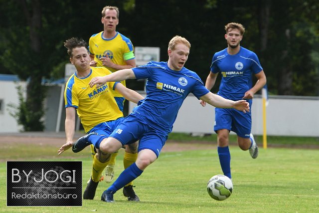 Fussball, Vorbereitungsspiel, Spielzeit21/22 VfB Wissen (blau) vs. SG Müschenbach (gelb/blau), 31-07.2021 | ||