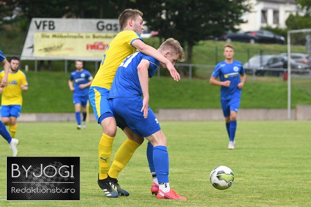 Fussball, Vorbereitungsspiel, Spielzeit21/22 VfB Wissen (blau) vs. SG Müschenbach (gelb/blau), 31-07.2021 | ||