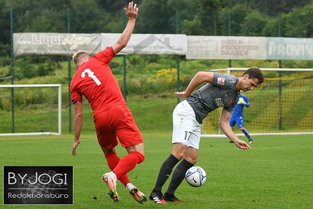 Fussball, Vorbereitungsspiel Saison 2021/22, SG Weitefeld (rot) vs. Spfr. Siegen (grau/weiß), 10.08.2021 | ||