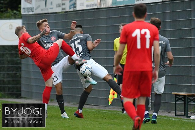 Fussball, Vorbereitungsspiel Saison 2021/22, SG Weitefeld (rot) vs. Spfr. Siegen (grau/weiß), 10.08.2021 | ||