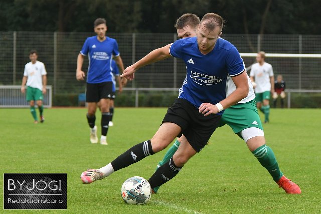 Fussball, Bezirksliga Ost, SG Westerburg (blau/schwarz) - vs TuS Niederahr (weiß/grün), 26.09.2021 | ||