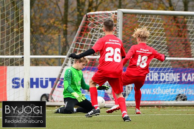 Fussball-Rheinlandliga C-Junioren, JSG Neitersen (rot) vs SSV Heimbach-Weis (weiß/schwarz), 21.11.2021 | ||