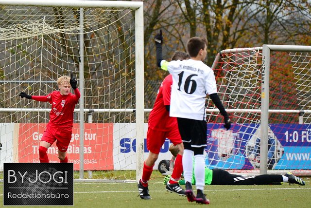 Fussball-Rheinlandliga C-Junioren, JSG Neitersen (rot) vs SSV Heimbach-Weis (weiß/schwarz), 21.11.2021 | ||