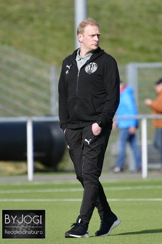 Fussball, Bezirksliga Ost, SG Weitefeld-Langenbach (rot) vs. SG Mueschenbach-Hachenburg (gelb/blau), 13.03.2022 | ||