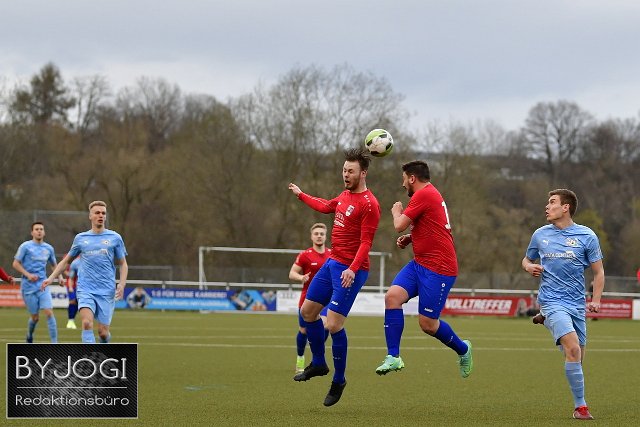 Fussball, Rheinlandliga, SG Neitersen/Altenkirchen (rot/blau) vs. SG Malberg (hellblau), 06.04.2022 | ||