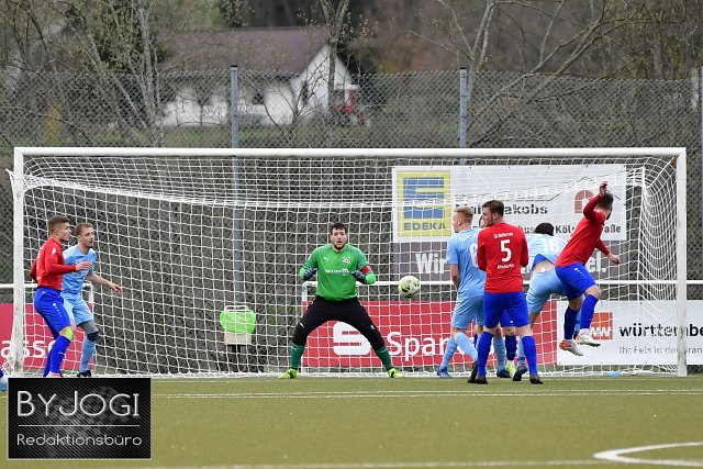 Fussball, Rheinlandliga, SG Neitersen/Altenkirchen (rot/blau) vs. SG Malberg (hellblau), 06.04.2022 | ||