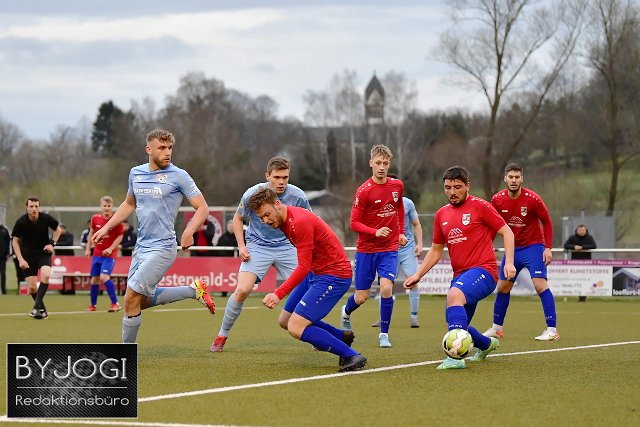 Fussball, Rheinlandliga, SG Neitersen/Altenkirchen (rot/blau) vs. SG Malberg (hellblau), 06.04.2022 | ||
