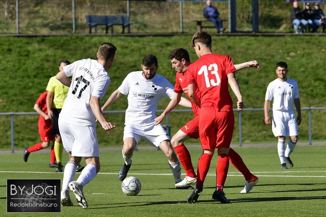 Fussball, Bezirksliga Ost, SG Weitefeld (rot) vs. SC Windhagen (weiß), 16.04.2022 | ||