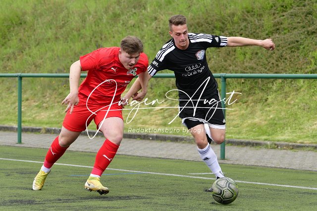 Fussball, Rheinlandliga, SV Malberg (rot) vs. FV Morbach (schwarz), 23.04.2022 | ||