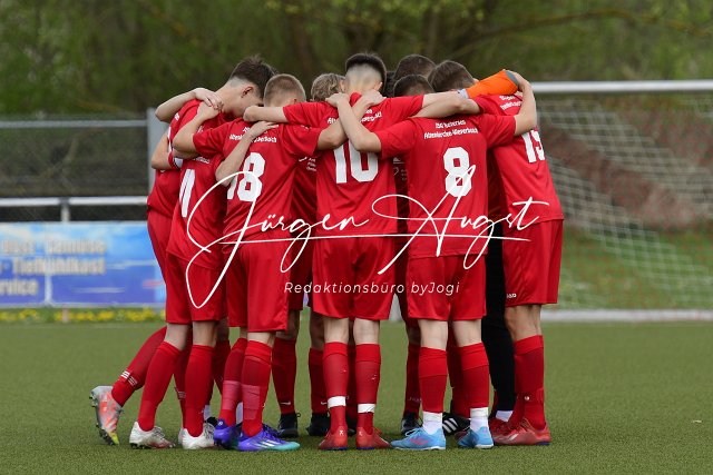 Fussball, Rheinlandpokal Viertelfinale, C-Junioren, JSG Neitersen-Altenkiirchen (rot) vs. Spfr. Eisbachtal (blau/schwarz), 23.04.2022 | ||
