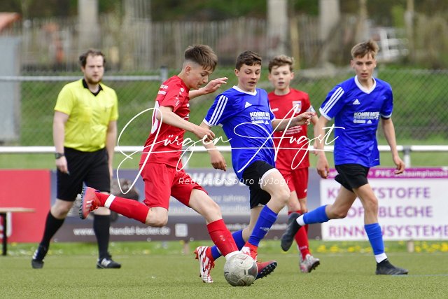 Fussball, Rheinlandpokal Viertelfinale, C-Junioren, JSG Neitersen-Altenkiirchen (rot) vs. Spfr. Eisbachtal (blau/schwarz), 23.04.2022 | ||