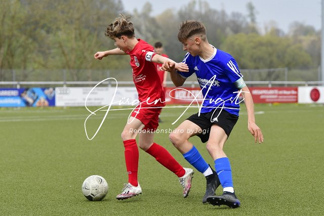 Fussball, Rheinlandpokal Viertelfinale, C-Junioren, JSG Neitersen-Altenkiirchen (rot) vs. Spfr. Eisbachtal (blau/schwarz), 23.04.2022 | ||