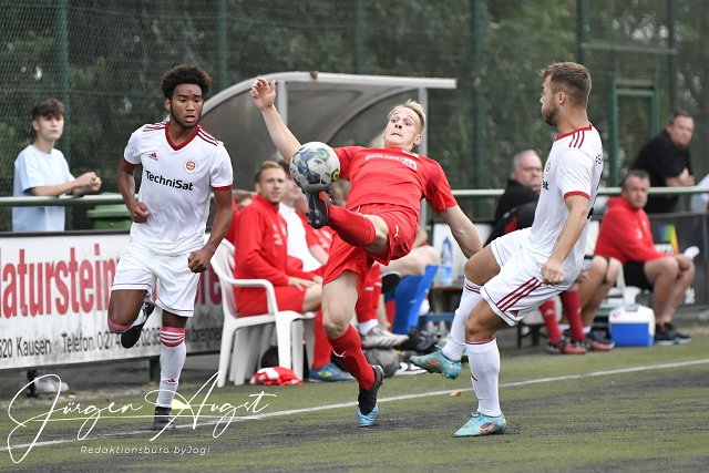 Fussball, Rheinlandliga, SG Malberg (rot) vs FSV Salmrohr (weiß) , 26.08.2022 | ||