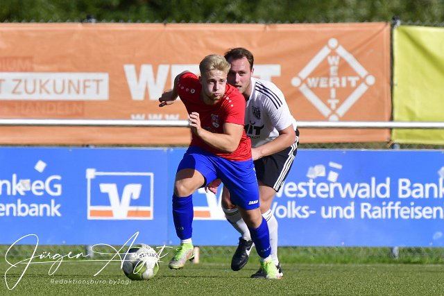 Fussball, Rheinlandliga, SG Neitersen-Altenkirchen (rot/blau) vs. TuS Mayen (weiß/schwarz), 25.09.2022 | ||