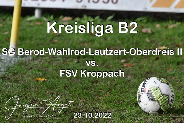 Fussball, Kreisliga B1, SG Berod-Wahlrod-Lautzert-Oberdreis II (rot) vs. FSV Kroppach (blau/schwarz), 23.10.2022 | ||