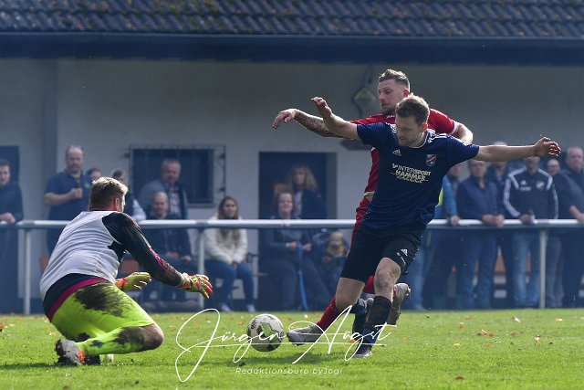 Fussball, Kreisliga B1, SG Berod-Wahlrod-Lautzert-Oberdreis II (rot) vs. FSV Kroppach (blau/schwarz), 23.10.2022 | ||