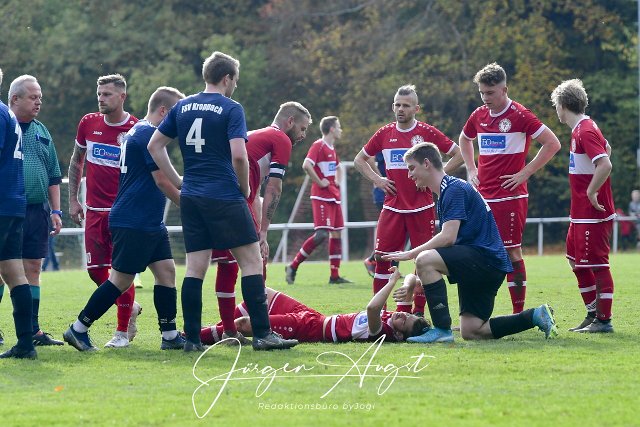 Fussball, Kreisliga B1, SG Berod-Wahlrod-Lautzert-Oberdreis II (rot) vs. FSV Kroppach (blau/schwarz), 23.10.2022 | ||