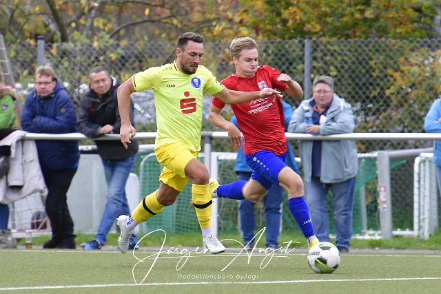 Fussball, Rheinlandliga, SG Altenkirchen-Neitersen (rot-blau) vs. FC Metternich (gelb), 23.10.2022 | ||