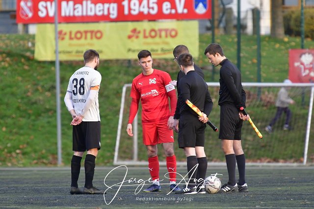 Fussball, Rheinlandliga, SG Malberg (rot) vs. SC Schneifel Stadtkyll (weiß/schwarz), 26.11.2022 | ||