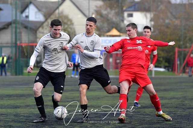 Fussball, Rheinlandliga, SG Malberg (rot) vs. SC Schneifel Stadtkyll (weiß/schwarz), 26.11.2022 | ||