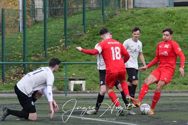 Fussball, Rheinlandliga, SG Malberg (rot) vs. SC Schneifel Stadtkyll (weiß/schwarz), 26.11.2022 | ||