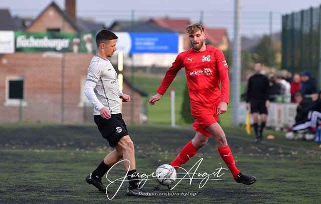 Fussball, Rheinlandliga, SG Malberg (rot) vs. SC Schneifel Stadtkyll (weiß/schwarz), 26.11.2022 | ||
