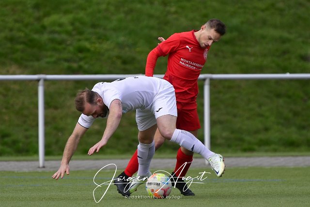 Fussball, Bezirksliga Ost, SG Weitefeld (rot) vs. VfB Linz (weiß), 08.04.2023 | ||