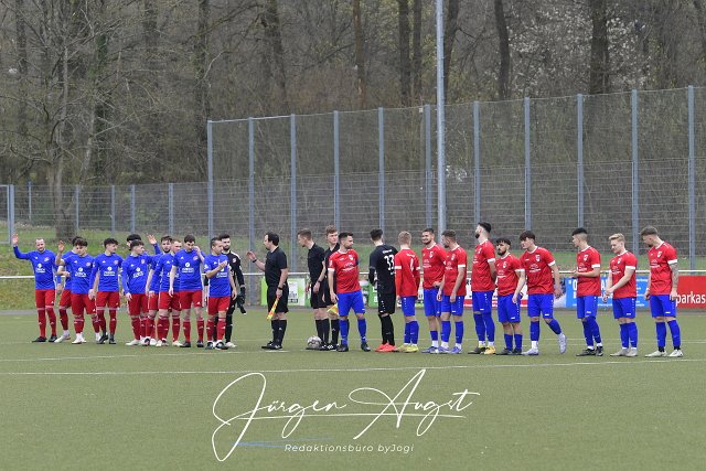 Fussball, Rheinlandliga, SG Altenkirchen-Neitersen (rot/blau) vs. FSV Trier-Tarforst (blau/rot), 16.04.2023 | ||