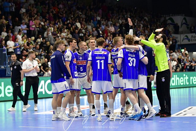 Der VfL Gummersbach entscheidet das Bergische Derby gegen den Bergischen HC mit 37 zu 34 für sich, Handball, 1 Bundesliga, VfL Gummersbach vs. Bergischer HC, 31. Spieltag, Schwalbe Arena Gummersbach, 18.05.2023 Foto: Eibner-Pressefoto/Juergen Augst | ||