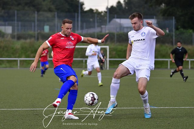 Fussball, Rheinlandpokal, Runde 2, SG Neitersen-Altenkirchen (rot/blau) vs. VfB Wissen (weiß), 30.08.2023 | ||