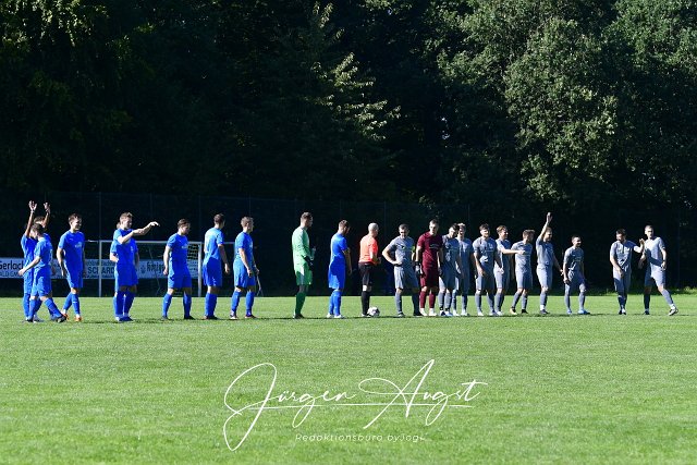 Fussball, Bezirksliga Ost, SG Müschenbach (blau) vs. SG Alpenrod (grau), 24.09.2023 | ||