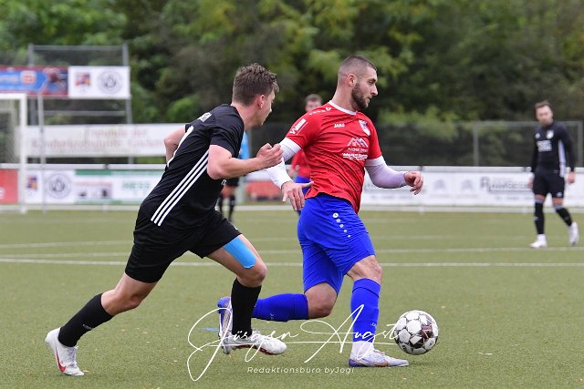 Fussball, Bezirksliga Ost, SG Neitersen-Altenkirchen (rot/blau) vs. SG Hundsangen (schwarz), 22.10.2023 | ||