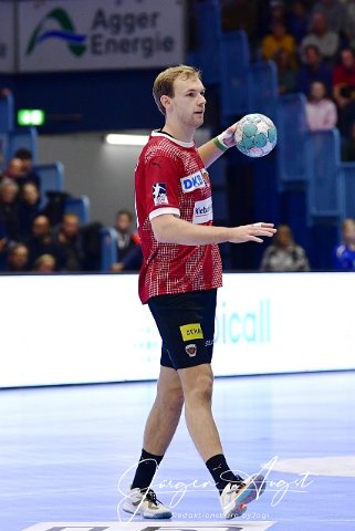 Solobild Mathias Gidsel (Fuechse Berlin 19) Handball, 1 Bundesliga, VfL Gummersbach vs. Fuechse Berlin, 11. Spieltag, Schwalbe Arena Gummersbach, 27.10..2023 Foto: Eibner-Pressefoto/Juergen Augst | ||