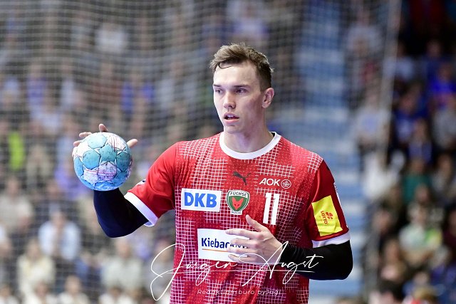Solobild Lasse Bredekjaer Andersson (Fuechse Berlin 11) Handball, 1 Bundesliga, VfL Gummersbach vs. Fuechse Berlin, 11. Spieltag, Schwalbe Arena Gummersbach, 27.10..2023 Foto: Eibner-Pressefoto/Juergen Augst | ||