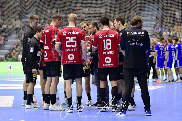 Jaron Siewert (Fuechse Berlin Trainer) mit seinen Berliner Fuechsen bei einer Auszeit Handball, 1 Bundesliga, VfL Gummersbach vs. Fuechse Berlin, 11. Spieltag, Schwalbe Arena Gummersbach, 27.10..2023 Foto: Eibner-Pressefoto/Juergen Augst | ||