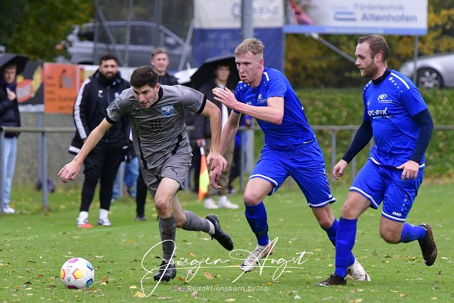 Fussball, Bezirksliga Ost, SG Weitefeld (grau) vs. SF Hoehr-Grenzhausen (blau), 29.10.2023 | ||