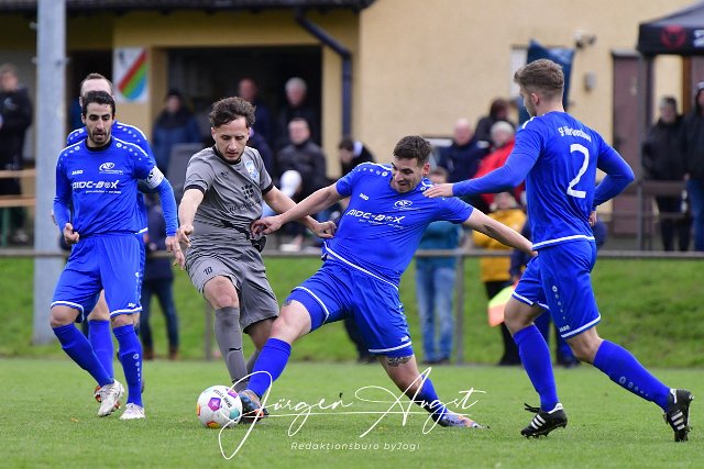 Fussball, Bezirksliga Ost, SG Weitefeld (grau) vs. SF Hoehr-Grenzhausen (blau), 29.10.2023 | ||