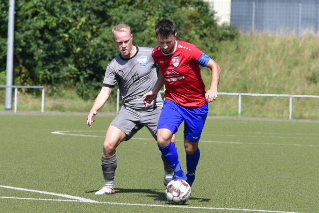 Fussball, Bezirksliga Ost, SG Neitersen-Altenkirchen (rot/blau) vs SG Weitefeld.Langenbach-Norken (grau), 20.08.2023 | ||